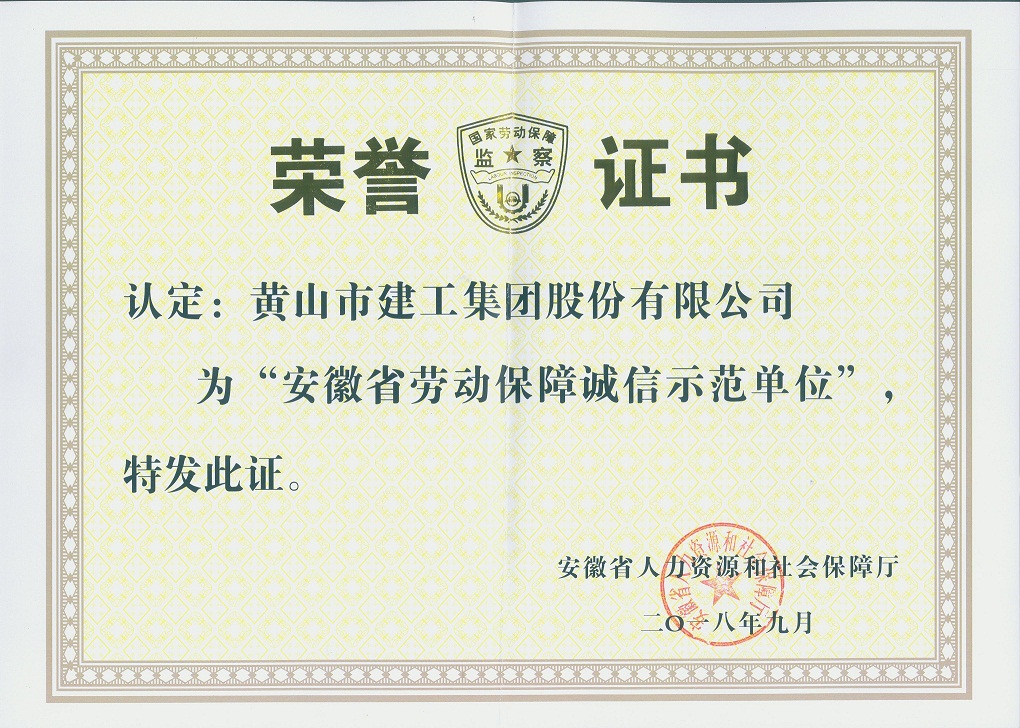据安徽省人力资源和社会保障厅[2018]343号IM网页版登录入口_IM(中国)认定2018年度安徽省劳动保障诚信示范单位的通知,集团IM网页版登录入口_IM(中国)被认定为“安徽省劳动保障诚信示范单位”。