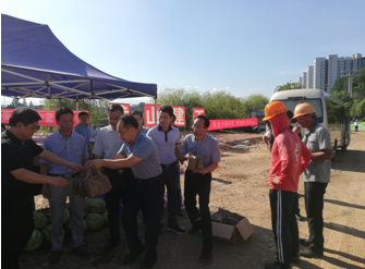 二〇一九年八月二日上午,黄山市屯溪区区委书记江善良率区四大班子及相关部门领导冒着酷暑,顶着骄阳,风尘仆仆亲赴黄山市建工集团正在紧张施工中的黄山市重点工程项目八一大桥项目现场“送清凉”。