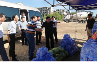 烈日下的八一大桥项目现场一片繁忙景象,工人们有的在支模、有的在焊接钢筋、有的在浇筑砼,一切都井然有序,忙而不乱。屯溪区区委书记江善良一行一到现场,就将一件件防暑降温慰问品递到在施工的工人们手中,并嘱咐在高温下施工的操作人员要多注意休息、及时补充水分和营养,按项目部要求合理安排工作时间,避免中午高温时间段施工,同时要求项目部积极做好防暑降温工作,保障施工一线工人的生命安全。充分体现了屯溪区委、区政府等领导对我集团IM网页版登录入口_IM(中国)的一片深情厚谊和关怀。