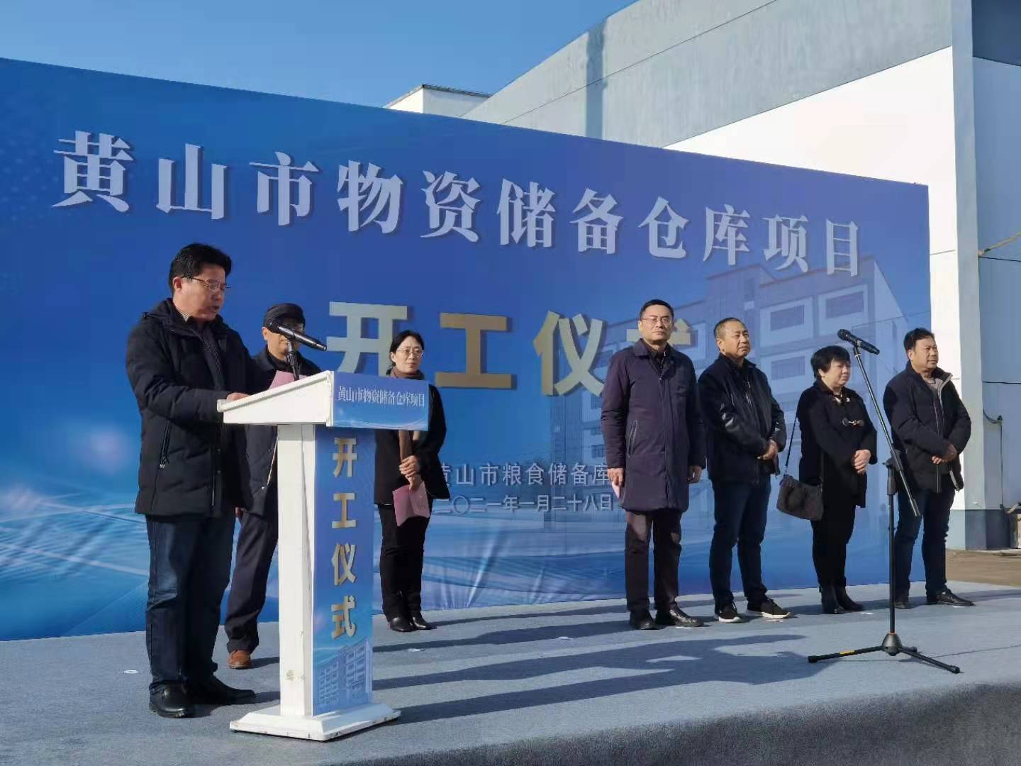 2021年1月28日上午9:30,黄山市物资储备库项目开工奠基活动在九龙工业园区项目地举行,省粮食和物资储备局物资和能源储备处处长孙安庆、四级调研员何薇、市发展改革委(市粮食储备局)主任(局长)丁士礼、建设单位主要负责人、IM网页版登录入口_IM(中国)总经理叶金发等相关单位负责人参加了奠基仪式。