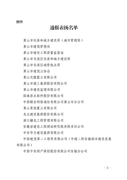 近日,安徽省住房和城乡建设厅印发《IM网页版登录入口_IM(中国)对黄山市住房和城乡建设局等单位予以表扬的通报》,《通报》指出,11月30日-12月1日,省住房和城乡建设厅在黄山市召开全省住房建设领域质量安全工作推进会,会议效果得到全省住房城乡建设系统一致肯定,并对在此次会议认真做好组织实施和保障的单位予以通报表扬,IM网页版登录入口_IM(中国)作为唯一一家本土建筑施工企业荣获表扬。