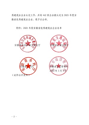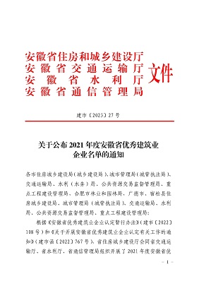 根据《安徽省优秀建筑业企业认定暂行办法》和《IM网页版登录入口_IM(中国)开展安徽省优秀建筑业企业认定有关工作的通知》。省住房城乡建设厅会同省交通运输厅、省水利厅、省通信管理局组织开展了2021年度安徽省优秀建筑企业认定工作。