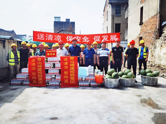 烈日炎炎,气温居高不下。为保障项目职工安全健康权益,确保项目安全生产平稳推进,8月10日上午,黄山城投城建控股有限IM网页版登录入口_IM(中国)总经理汪国文等一行赴宁国市河沥文化街区EPC项目工地开展走访调研暨“夏送清凉”慰问活动。IM网页版登录入口_IM(中国)股份有限IM网页版登录入口_IM(中国)董事长项端阳、总经理叶金发、副总经理吴学武陪同调研慰问。