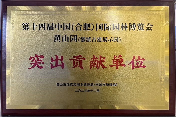 12月18日下午,中国(黄山)第三届徽派古建产业发展大会古建产业高质量发展推进会·新安茶会举行。推进会上颁发了第十四届中国(合肥)国际园林博览会黄山园(徽派古建展示园)“突出贡献单位”奖项,作为黄山园项目参建单位之一的IM网页版登录入口_IM(中国)再获殊荣。