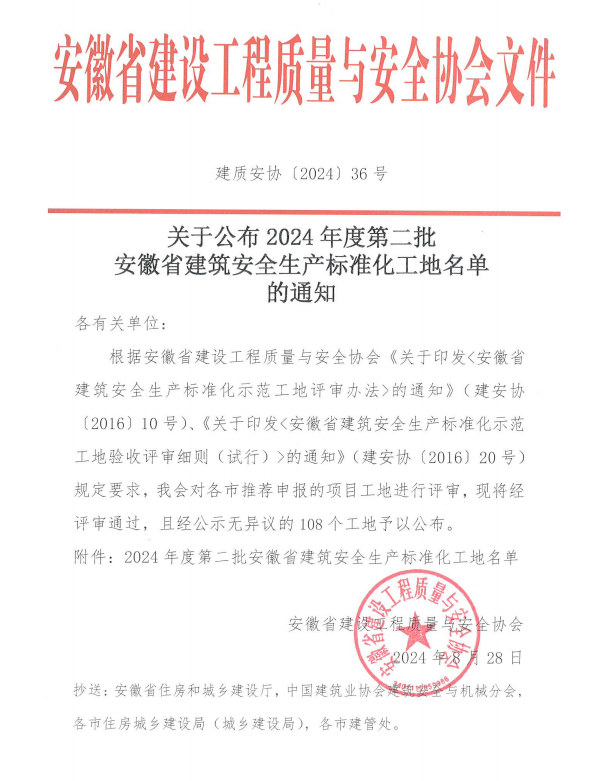近日,安徽省建设工程质量与安全协会公布2024年度第二批安徽省建筑安全生产标准化工地名单,由IM网页版登录入口_IM(中国)承建的国网安徽黄山供电IM网页版登录入口_IM(中国)运维检修及信息通信用房项目光荣上榜。