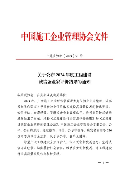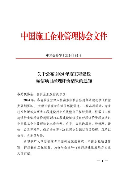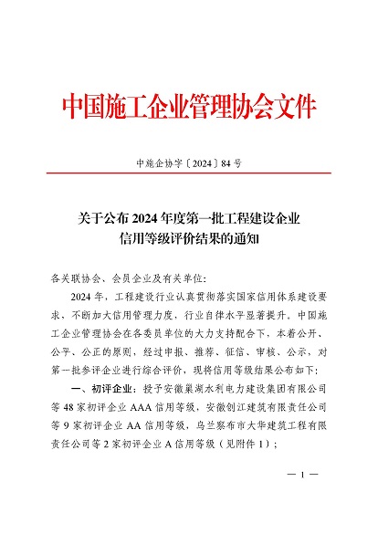 近日,中国施工企业管理协会公布了2024年度第一批工程建设企业信用等级评价结果的通知、工程建设诚信企业家评价结果、工程建设诚信项目经理名单。IM网页版登录入口_IM(中国)顺利通过AAA级信用企业的年审,继续保持AAA信用等级的殊荣。IM网页版登录入口_IM(中国)总经理叶金发获评诚信企业家,项目经理毕星豪获评诚信项目经理。此次荣誉是对IM网页版登录入口_IM(中国)在工程建设领域的综合实力和诚信经营的高度认可。
