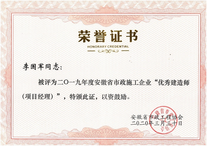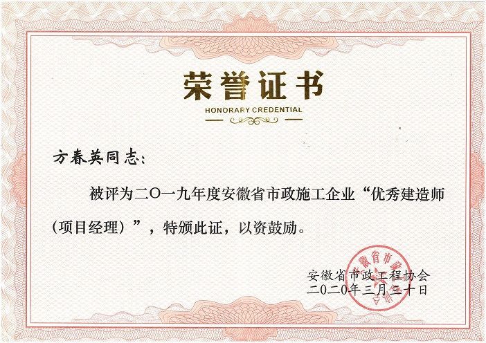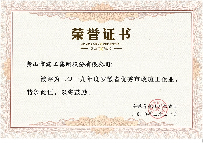 2019年度安徽省优秀市政施工企业