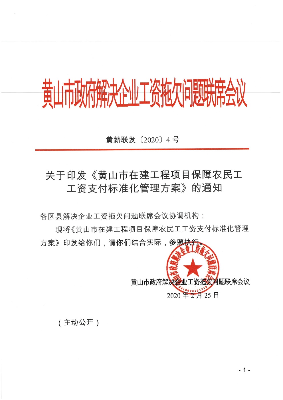 转发:IM网页版登录入口_IM(中国)印发《黄山市在建工程项目保障农民工工资支付标准化管理方案》的通知